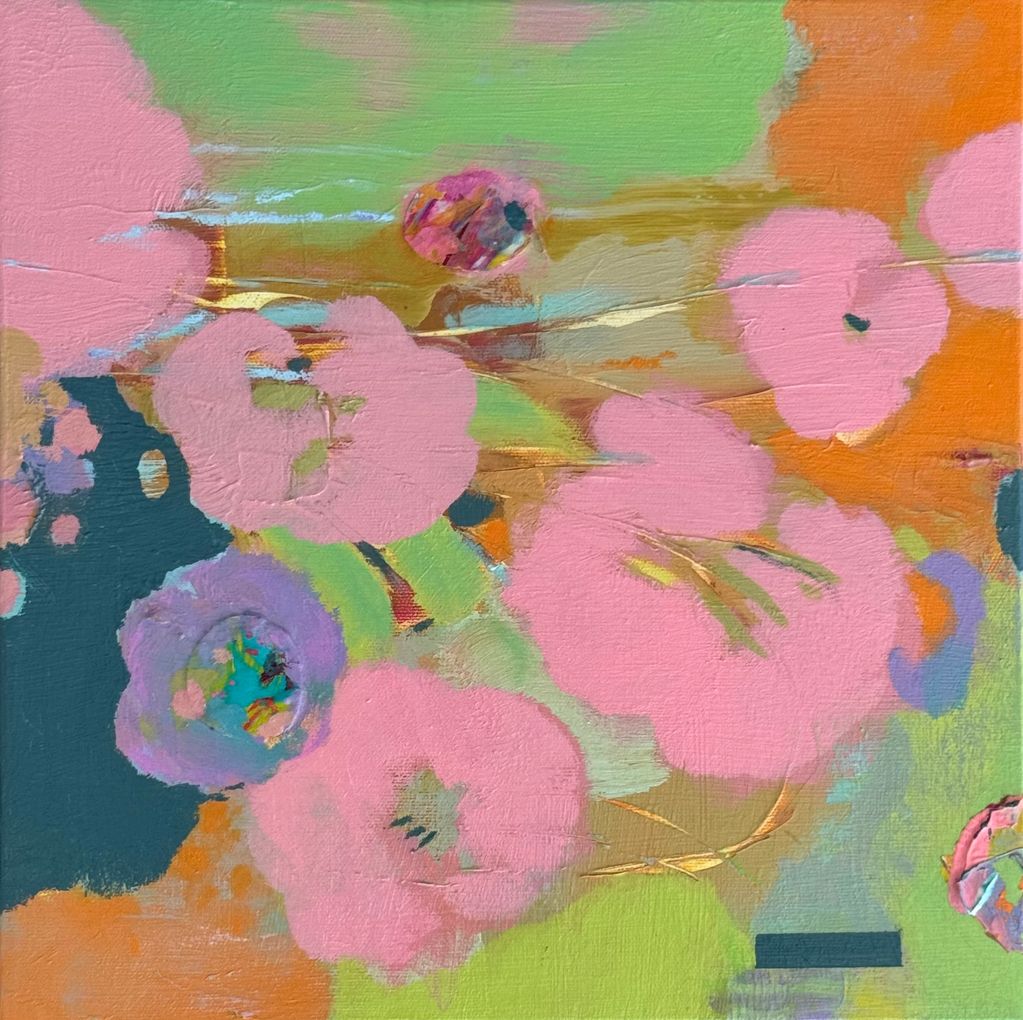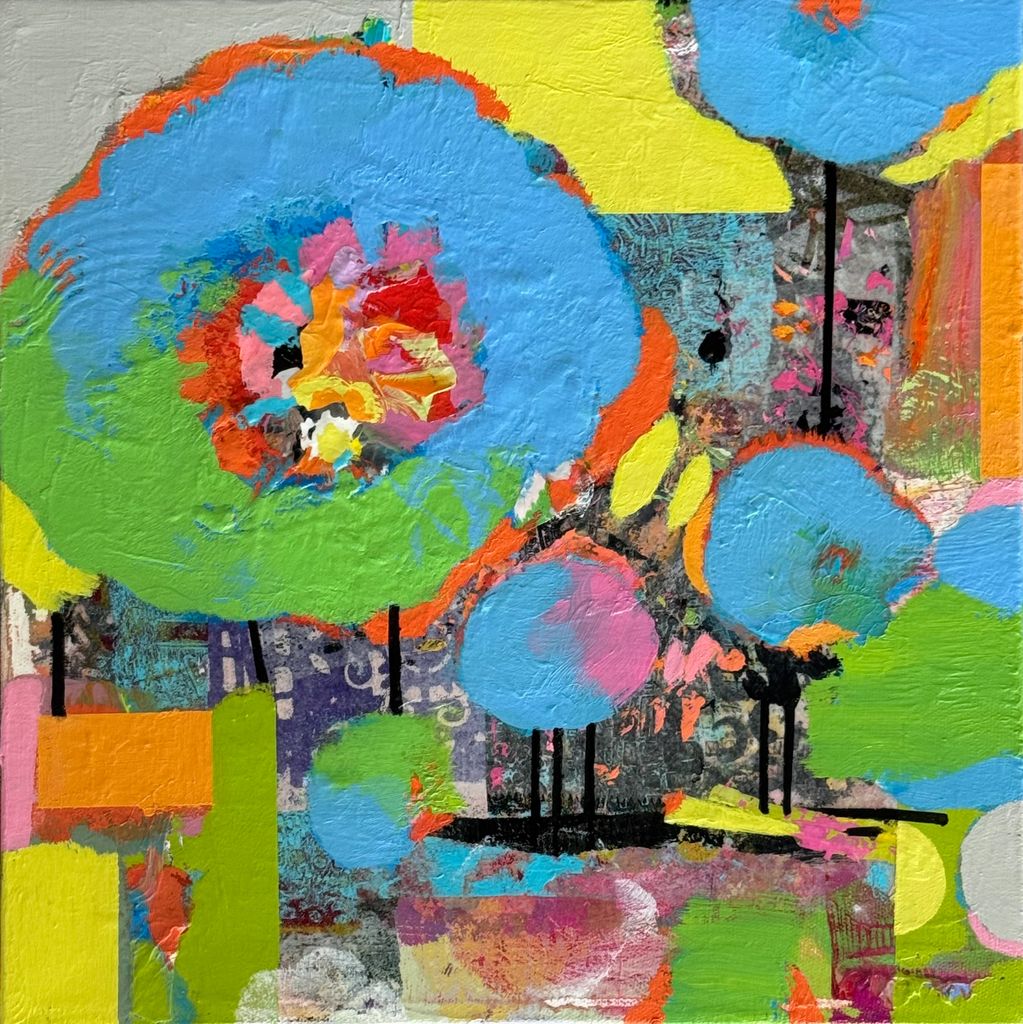 Acrylic, gelli plate prints and wax pastel on 1.5” deep canvas